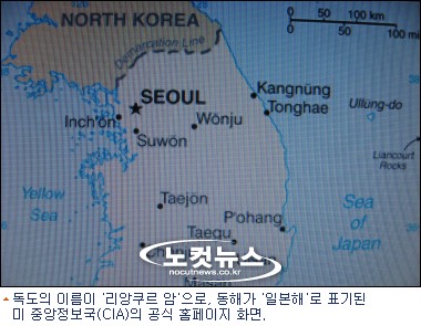 한편 미국 국무부와 중앙정보국 CIA의 공식 홈페이지에는 이미 수년 전부터 독도의 이름은 리앙쿠르 암초로, 동해는 일본해로 각각 표기돼 있다.