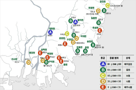 부산지역 하천 2016 수생태계 건강성 등급 현황 (사진=부산시보건환경연구원 제공)