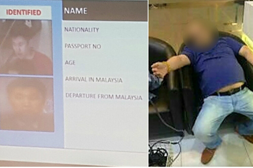 북한 국적 용의자(왼쪽)와 지난 18일 김정남이 쿠알라룸푸르 공항 제2터미널에서 피습된 직후 의식을 잃은 상태(오른쪽) (사진=쿠알라룸푸르 박초롱 기자, '더스타' 온라인 캡처)