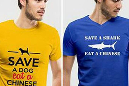 이 셔츠 앞면에는 "개를 구하고 중국인을 먹어라" "상어를 구하고 중국인을 먹어라"는 구절이 인쇄돼있다. 보신탕을 즐겨먹고 상어 지느러미 요리를 좋아하는 중국인의 식습관을 빗댄 것으로 보인다.