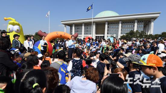 더불어민주당 문재인 대선후보가 5일 오전 국회 앞마당에서 열린 어린이날 행사에 참석해 인사말 하고 있다.