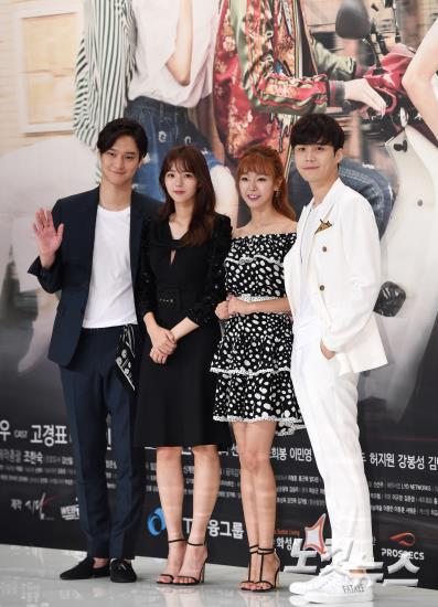 배우 고경표-채수빈-고원희-김선호가 1일 오후 서울 영등포 타임스퀘어 아모리스 컨벤션에서 열린 KBS2TV 금토 드라마 '최강 배달꾼' 제작발표회에 참석해 포즈를 취하고 있다