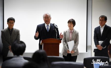 가습기 살균제 사건처리 TF(태스크포스) 팀장인 권오승 서울대 명예교수가 19일 오전 서울 중구 한국공정거래원에서 2012년부터 2016년까지 공정위의 가습기 살균제 사건처리 절차와 내용의 적정성 평가 결과를 밝히고 있다.
