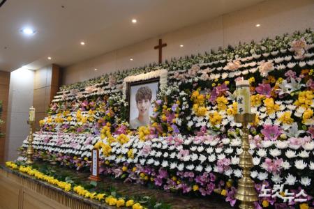 지난 18일 사망한 그룹 샤이니의 종현(김종현)의 빈소가 19일 오후 서울 풍납동 아산병원 장례식장 20호실에 마련됐다. 샤이니 종현은 18일 서울 강남구 청담동의 한 레지던스에서 쓰러진 채 발견, 인근 대학병원으로 이송되었으나 사망했다. 발인은 오는 21일.(사진공동취재단)