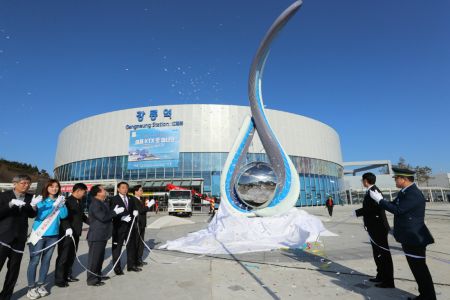 강원 강릉시가 26일 서울~강릉 KTX 종착역인 강릉역 광장에서 최명희 시장과 지역 주민 등이 참석한 가운데 강릉시 상징 조형물 제막식을 가졌다.