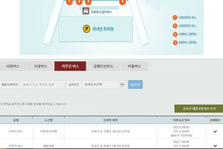 김해공항 리무진버스 등 대중교통 이용을 안내하고 있는 김해공항 홈페이지 캡쳐