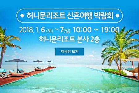 한편 신혼여행 전문여행사인 허니문리조트는 1월 6일부터 7일 양일간 새해 첫 신혼여행 박람회를 개최한다. 이번 박람회는 청담동 허니문리조트 본사를 비롯 평택, 청주, 대전, 전주, 대구, 부산에 자리한 허니문리조트 지사에서도 동시 개최돼 지방에 거주 중인 예비부부에게도 동일한 혜택이 제공된다.