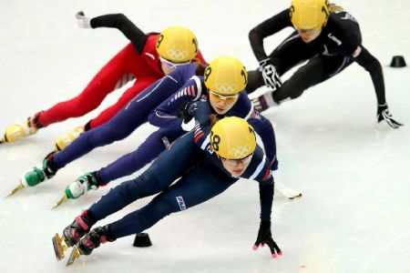 2014 소치 올림픽 쇼트트랙 1000m경기에서 박승희가 1위로 달리고 있다. (사진=대한체육회 제공)