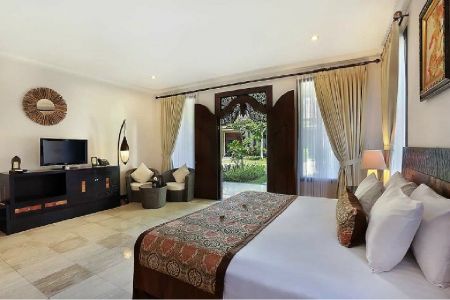 소박함이 주는 푸근함과 여유를 느낄 수 있는 옴박 선셋 리조트의 방갈로 객실. 널찍한 발코니가 있어 열대 정원을 감상하기 좋다. (사진=허니문리조트 제공)