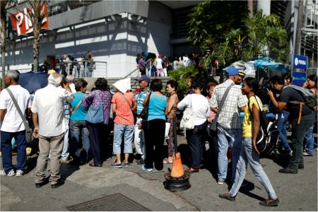 음식과 생필품을 사려고 슈퍼마켓 앞에서 길게 줄 선 베네수엘라인들 (사진=연합뉴스 제공)