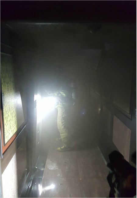 거제 모텔 화재 진압 현장. (사진=경남소방본부 제공)