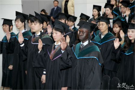 지난 15일 열린 인제대 의과대학 졸업식. 검은 피부의 흰 가운을 입은 남성이 주목을 받았다.
