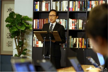 자못 비장한 모습이었지만, 이 전 대통령은 자신의 사무실에서 발표문만 일방적으로 낭독한 뒤 기자들의 물음을 받지 않은 채 사라졌다.
