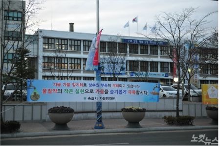 겨울 가뭄이 지속되면서 속초지역 곳곳에 물절약 현수막이 걸려 있다.
