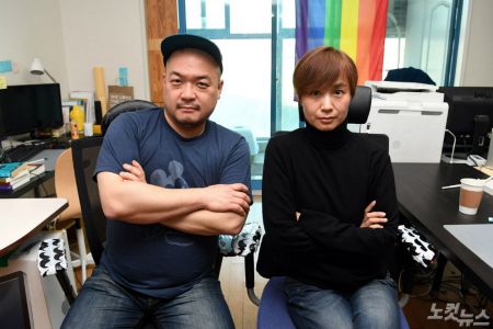 용산참사 철거민들의 이야기를 다룬 영화 ‘공동정범’ 의 김일란(오른쪽), 이혁상 감독이 23일 오후 서울 서교동 사무실에서 CBS노컷뉴스와 인터뷰 전 포즈를 취하고 있다. (사진=황진환 기자)