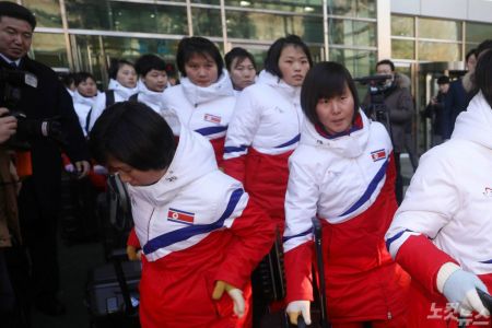 우리와 단일팀을 이룰 북한 여자아이스하키 선수단 15명이 25일 남측으로 내려왔다.
