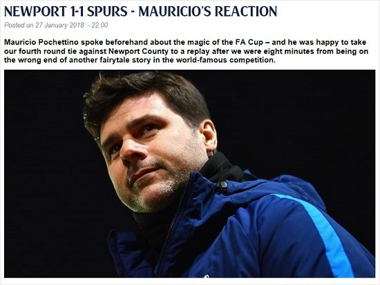 토트넘은 28일(한국시각) 웨일스 뉴포트의 로드니 퍼레이드에서 열린 뉴포트 카운티와 2017~2018 잉글랜드 FA컵 4라운드(32강)에서 1-1 무승부에 그쳤다.