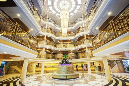 1만 7000톤급 6층규모의 골드크루즈의 호화로운 로비의 모습(사진=웹투어 제공)