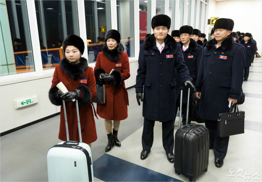 2018 평창동계올림픽 개막을 8일 앞두고 1일 휴전선을 넘어 방남한 북한 선수단. 원길우 선수단장을 비롯해 선수 10명 등 본진 32명이 강원도 강릉선수촌에 입촌했다.