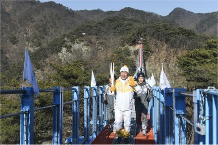특히, 이색봉송은 오전 11시 30분 국내최장 길이의 원주 소금산 출렁다리에서 진행돼 원주의 대표 관광지를 알렸다.