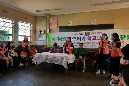 경기도초등보건교육연구회 소속 교사들이 지난달 남아프리카공화국을 방문, 건강체험교실 등 봉사활동을 펼치고 있다. (사진=경기도초등보건교육연구회 제공)
