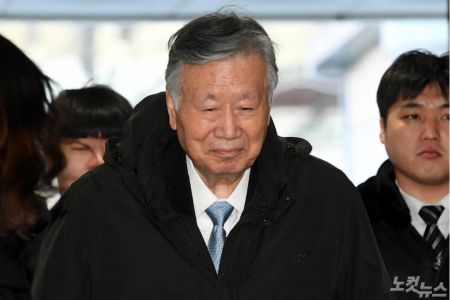 회삿돈을 빼돌리고 임대주택 분양가를 조작해 폭리를 취하는 등 각종 기업범죄를 저지른 혐의를 받는 이중근 부영그룹 회장이 6일 오전 서울 서초구 서울중앙지검에서 열린 영장실질심사에 출석하고 있다. (사진=박종민 기자)