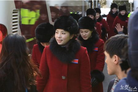 7일 강원 인제 스피디움에 도착한 북한 응원단. (사진=자료사진)