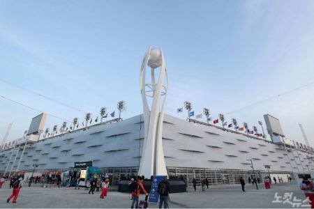 2018 평창동계올림픽 개막일인 9일 오후 개막식장인 강원 평창 올림픽스타디움 성화대 모습. (사진=이한형 기자)