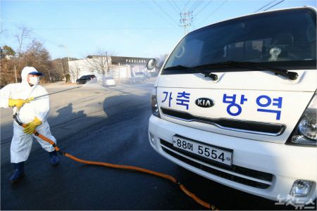방역 관계자가 조류 인플루엔자(AI) 차단을 위해 차량 소독을 하고 있다. (사진=자료사진)