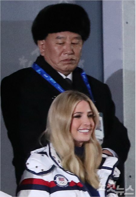 2018평창 동계올림픽 폐막식이 지난 25일 오후 강원도 평창올림픽스타디움에서 열렸다. 이방카 트럼프 미국 백악관 보좌관 뒤로 김영철 북한 노동당 중앙위원회 부위원장(통일선전부장)이 자리하고 있다. (사진=CBS특별취재팀)
