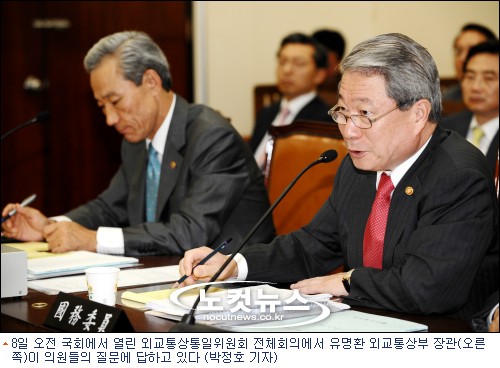 유명환 장관은 이에 대해 "그것은 좀 어업에 관해, 물론 이것이…"라며 명쾌한 답변을 하지 못했다.