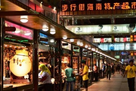 싼야의 명동이라고 불리는 푸싱제(步行街)는 하이난 특산 장신구와 기념품, 중저가 의류 전문점이 몰려 있다. (사진=웹투어 제공)
