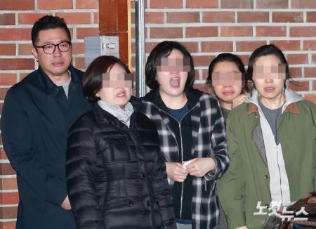 이 23일 서울 논현동 이명박 전 대통령 자택에서 아들 이시형씨를 비롯한 가족들이 이 전 대통령을 배웅하며 울먹거리고 있다.