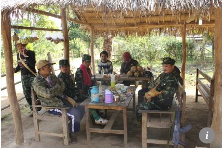 검문소를 지난 후 20가구가 채 안 되는 마을 '나르 몬'에 이르렀다. 탁자와 의자가 놓인 야외 휴식공간에는 샨족 게릴라 몇 명이 햇빛을 피해 옹기종기 모여 있었다. 이들은 부끄러워하면서도 친절했다. 관광객과 쭈뼛쭈뼛 인사를 나눈 뒤 탁자에 총을 기대어 놓은 다음 함께 셀카를 찍었다.