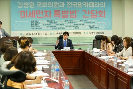 ◆ 강병원> 미세먼지 특별법은 이 미세먼지가 한 부처만의, 환경부만의 대응으로 해결할 수 있는 문제가 아니지 않습니까? 그래서 중앙행정기관의 장과 민간전문가가 머리를 맞대서 총력 대응하도록 하고 이것을 대통령께서 직접 진두지휘할 수 있도록 대통령 직속 미세먼지특별대책위원회를 구성하는 내용이 들어가 있고요.