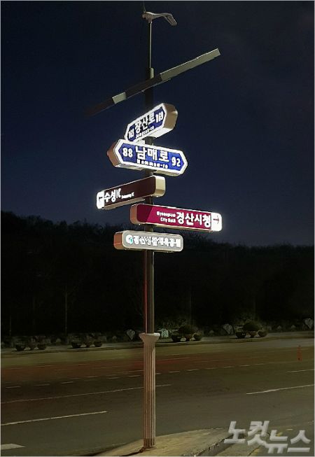 경산시가 친환경 하이브리드 LED조명 도로명판(멀티사인시스템)을 설치했다.