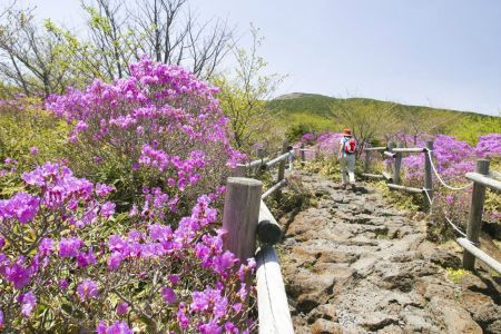 만개한 진달래가 아름다운 한라산의 봄 정취를 즐겨보자. (사진=웹투어 제공)