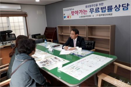 이번에 진행된 무료법률상담은 손해배상, 증여, 상속관련 등 총 4건이다. 법무법인 미래로 도춘석 대표변호사가 풍호동을 직접 방문해 진행했다.