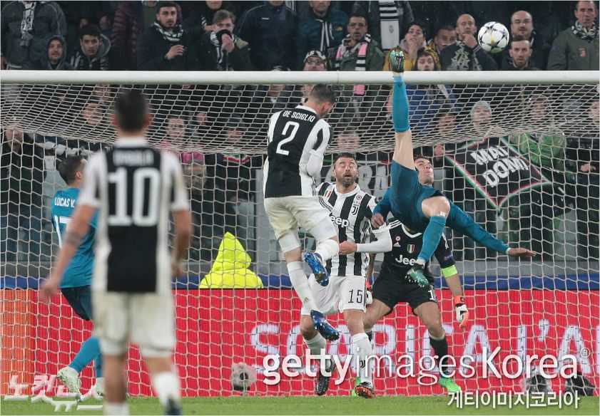 크리스티아누 호날두의 그림 같은 오버헤드 킥. (사진=노컷뉴스/gettyimages)