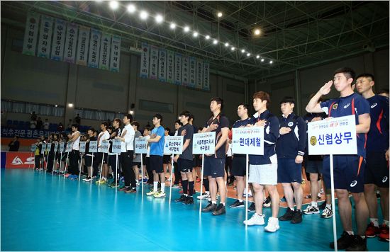 한국실업배구연맹은 6일부터 6일간 충북 청주체육관에서 2018 한국실업배구연맹전을 개최한다. 사진은 지난해 대회 개회식의 모습.(사진=한국실업배구연맹)