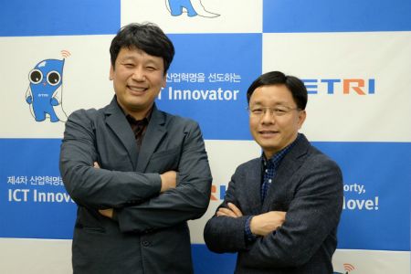 (사진 왼쪽부터) ETRI 창립 42주년 기념식에서 '올해의 연구자상'을 수상한 박성익 박사와 'ETRI 기술대상'에 선정된 'UHD 모바일방송 기술'을 개발한 방송·미디어연구소 김흥묵 미디어전송연구그룹장.(사진=ETRI 제공)