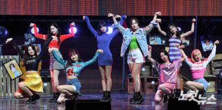 그룹 트와이스가 9일 서울 예스24 라이브홀에서 열린 다섯번째 미니앨범 '왓 이즈 러브?(What is Love?)' 발매 쇼케이스에서 멋진 공연을 펼치고 있다.