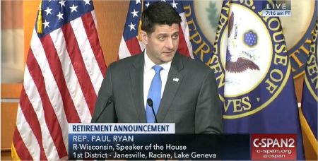 공화당 소속 폴 라이언 미 하원 의장이 11일(현지시간) 정계은퇴 선언을 하고 있다. (사진=C-span 영상 캡쳐)