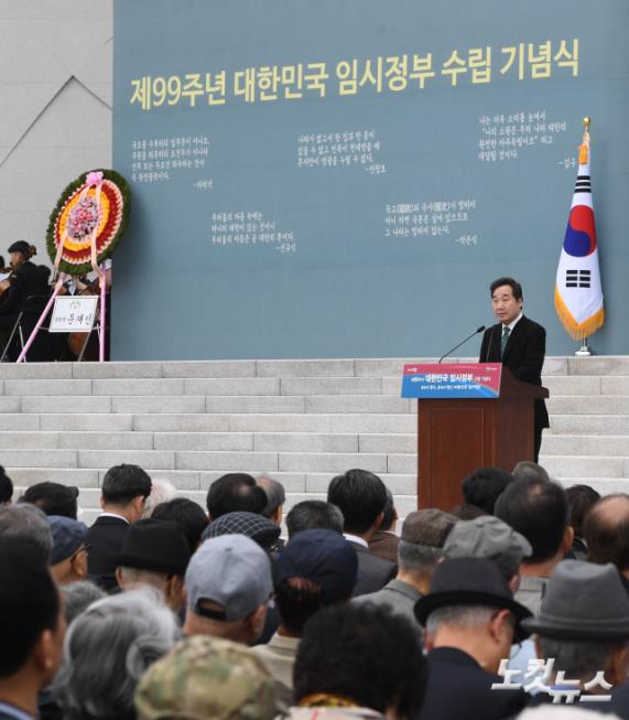 대한민국 임시정부 수립 기념식 기념사하는 이낙연 국무총리