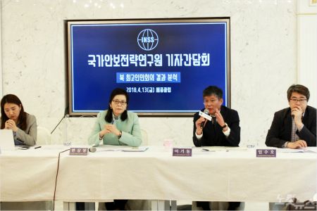 ◇ 北 국교 수립 전제로 주한미군 용인 가능성 커국가안보전략연구원은 13일 서울의 한 식당에서 '최고인민회의 제13기 6차 회의 특징 분석'이라는 주제로 기자간담회를 열고 최근 한반도 정세 등에 대한 의견을 제시했다.