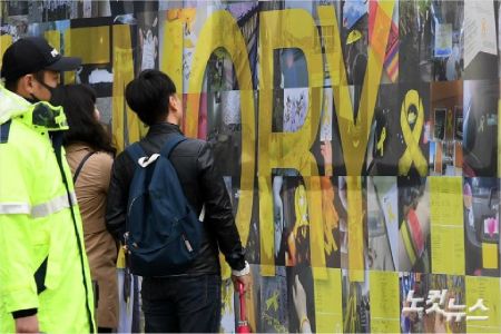 세월호 사고 4주기를 앞둔 14일 오후 서울 광화문 광장에 단원고 피해 학생들과 교사들을 기리는 '4·16 기억 전시' 부스가 마련돼 있다. (사진=박종민 기자)