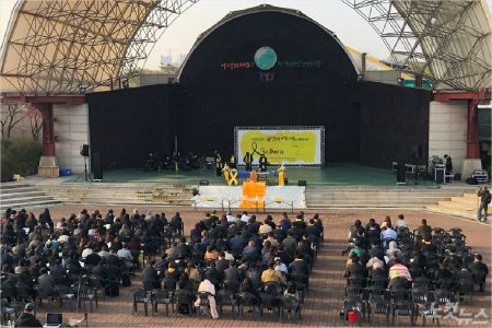기독인들이 안산 화랑 유원지 내 야외공연장에서 기억예배를 드렸다. 이들은 세월호를 잊지 말자고 다짐했다.