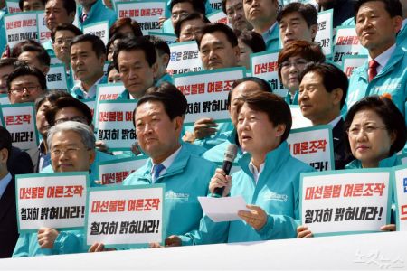 박주선 공동대표는 "더불어민주당은 문재인 정권과 한 통속이고 댓글 공작 부정 선거의 공범이라고 얘기 안 할 수 없다"고 공세 수위를 높였다. '드루킹(인터넷 필명)' 김 모 씨가 이른바 'MB(이명박 전 대통령) 아바타론'으로 비판했던 바른미래당 안철수 인재영입위원장도 "부정선거"를 언급하고 있다.