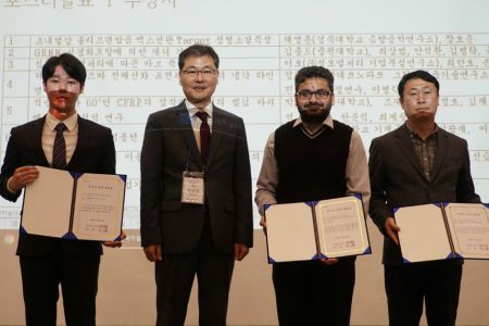전주대 산업공학학과 4학년김경수씨(사진 왼쪽)가 한국기계가공학회 2018년도 춘계학술대회에서 최우수 논문상을 수상했다. (사진=전주대 제공)