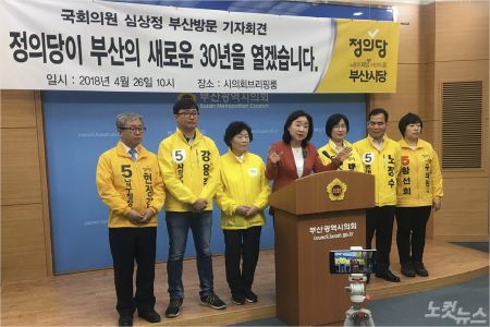 이어 심 의원은 "부산의 고용률은 여전히 7대 도시에서 최하위에 머물고 있다"고 지적하며 "그럼에도 서 시장은 선거에 임박해 예산 확보 없는 무책임한 개발 공약을 남발하고 있고, 이러고도 표를 달라하면 후안무치한 일이다. 정의당이 토건세력만 배불리는 난개발 막고 위기에 처한 부산 시민의 삶을 지키겠다"고 말했다.